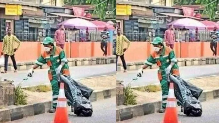 Covid-19: First Photos Of Funke Akindele packing Garbage alone on the Street hits the internet as she begins community service [See Here]